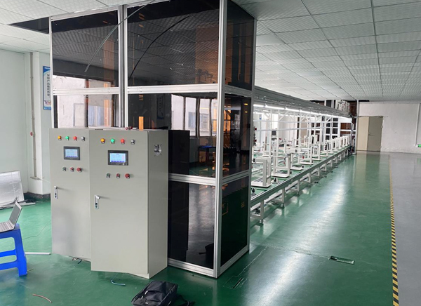 采用鋁板履帶式傳動,電氣采用PLC可編程序加變頻器,通過位置檢測傳感器和液晶顯示屏,真正實現裝配工藝的自動控製,並可根據生產需要,調整參數,人員的數量來控製產量,實現最大產能效率,流水線上方采用鋁合金支架,照明采用LED照明燈及LED防爆燈具(用於噴漆工位)及節能風扇,符合國家節能減排綠色環保的要求,氣動回動采用不鏽鋼管,采用進口氣動工具,保證工具可靠性,提高勞動效率。